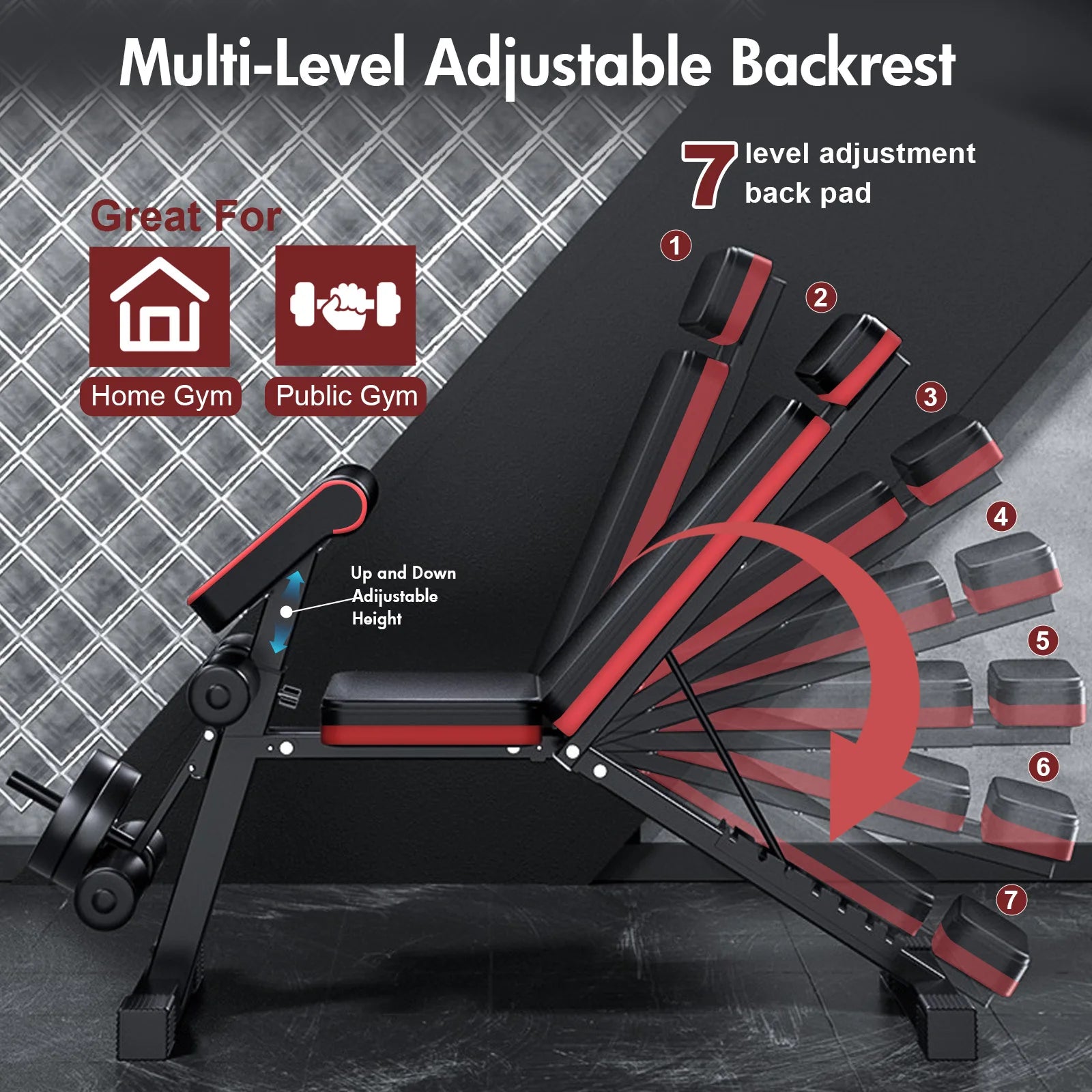 Adjustable Weight Bench 7-Level Foldable with Extended Headrest Leg Extension Incline Decline Bench 770 lbs Full-Body Strength